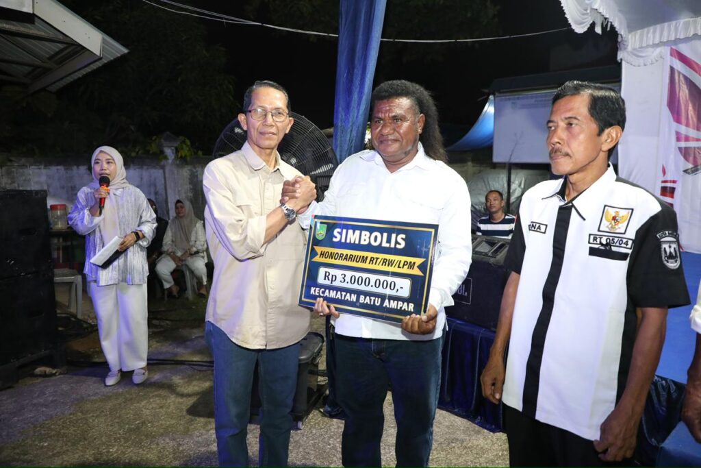 KECAMATAN BATU AMPAR – Acara Silahturahmi Walikota Batam Dan Wakil Walikota Batam Bersama RT, RW, LPM dan Tokoh Masyarakat Se- Kecamatan Batu Ampar Tahun 2025. Acara Dihadiri Wali Kota Batam Bapak Dr. H. Amsakar Achmad, S.Sos. M.Si, Anggota DPRD Kota Batam Ibu Asnawati Atiq, SE. MM, beberapa kepala OPD, Upika Kecamatan Batu Ampar dan bersama RT, RW, LPM dan Tokoh Masyarakat Se-Kecamatan Batu Ampar, selanjutnya bapak Wali Kota Batam berkenan memberikan secara simbolis honorarium RT, RW dan LPM Periode Juli-September Tahun 2025, acara bertempat di halaman kantor lurah Sungai Jodoh kecamatan Batu Ampar. Minggu, 26 Oktober 2025.
