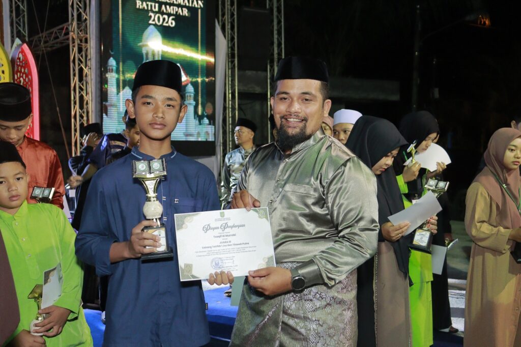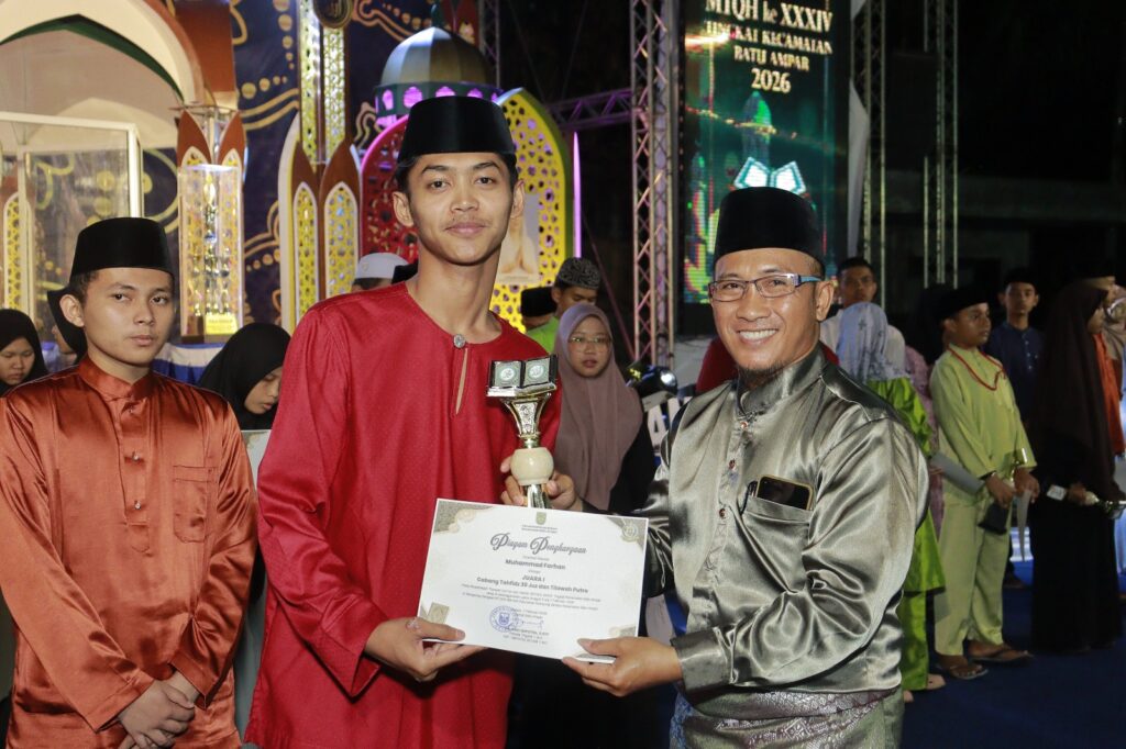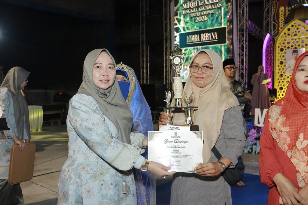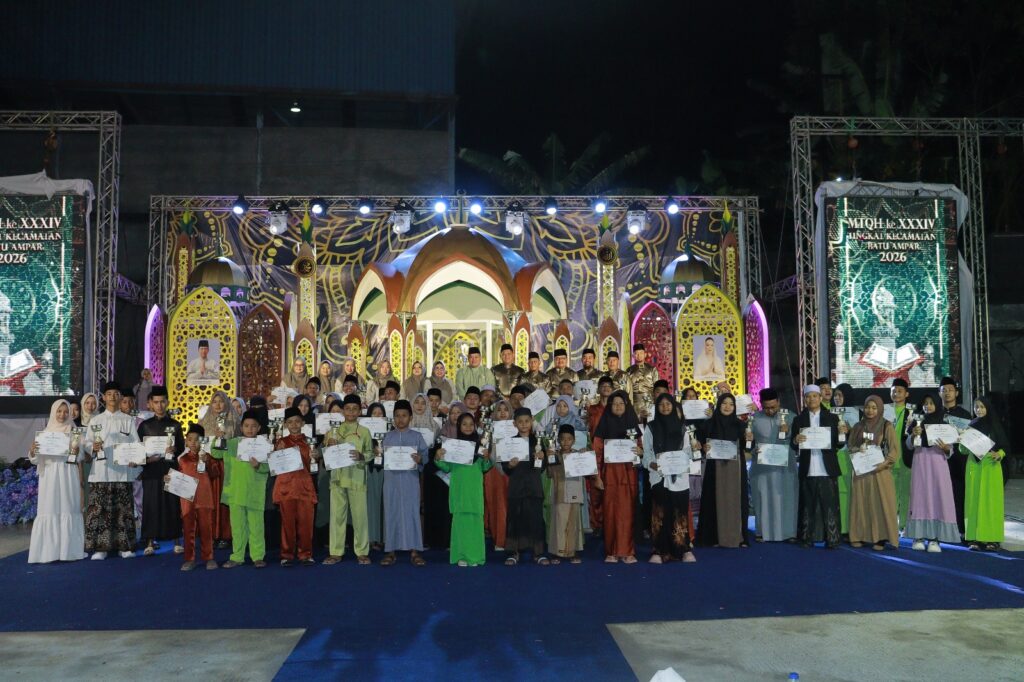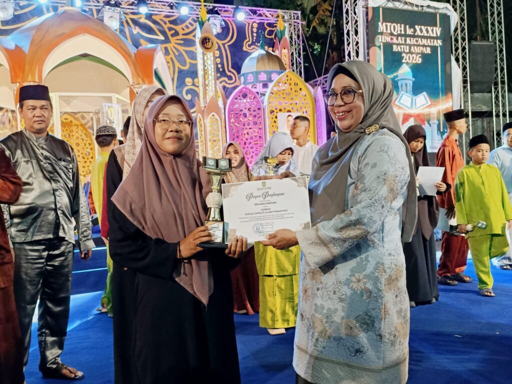 KECAMATAN BATU AMPAR – Penutupan Musabaqah Tilawatil Qur’an dan Hadits (MTQH) ke XXXIV Tingkat Kecamatan Batu Ampar di hadiri oleh Walikota Batam yang di wakili oleh Asisten Pemerintahan dan Kesejahteraan Rakyat Kota Batam bapak Drs. Yusfa Hendri, M.Si., Anggota DPRD Kota Batam ibu Asnawati Atiq, SE. MM., Upika Kecamatan Batu Ampar beserta masyarakat Se-Kecamatan Batu Ampar. MTQH ke XXXIV Tingkat Kecamatan Batu Ampar ditutup oleh Asisten Pemerintahan dan Kesejahteraan Rakyat Kota Batam, dan yang menjadi Juara Umum MTQH ke XXXIV Tingkat Kecamatan Batu Ampar Tahun 2026 adalah Kelurahan Tanjung Sengkuang. Penutupan MTQH ke XXXIV Tingkat Kecamatan Batu Ampar dilaksanakan pada hari Sabtu tanggal 7 Februari 2026.